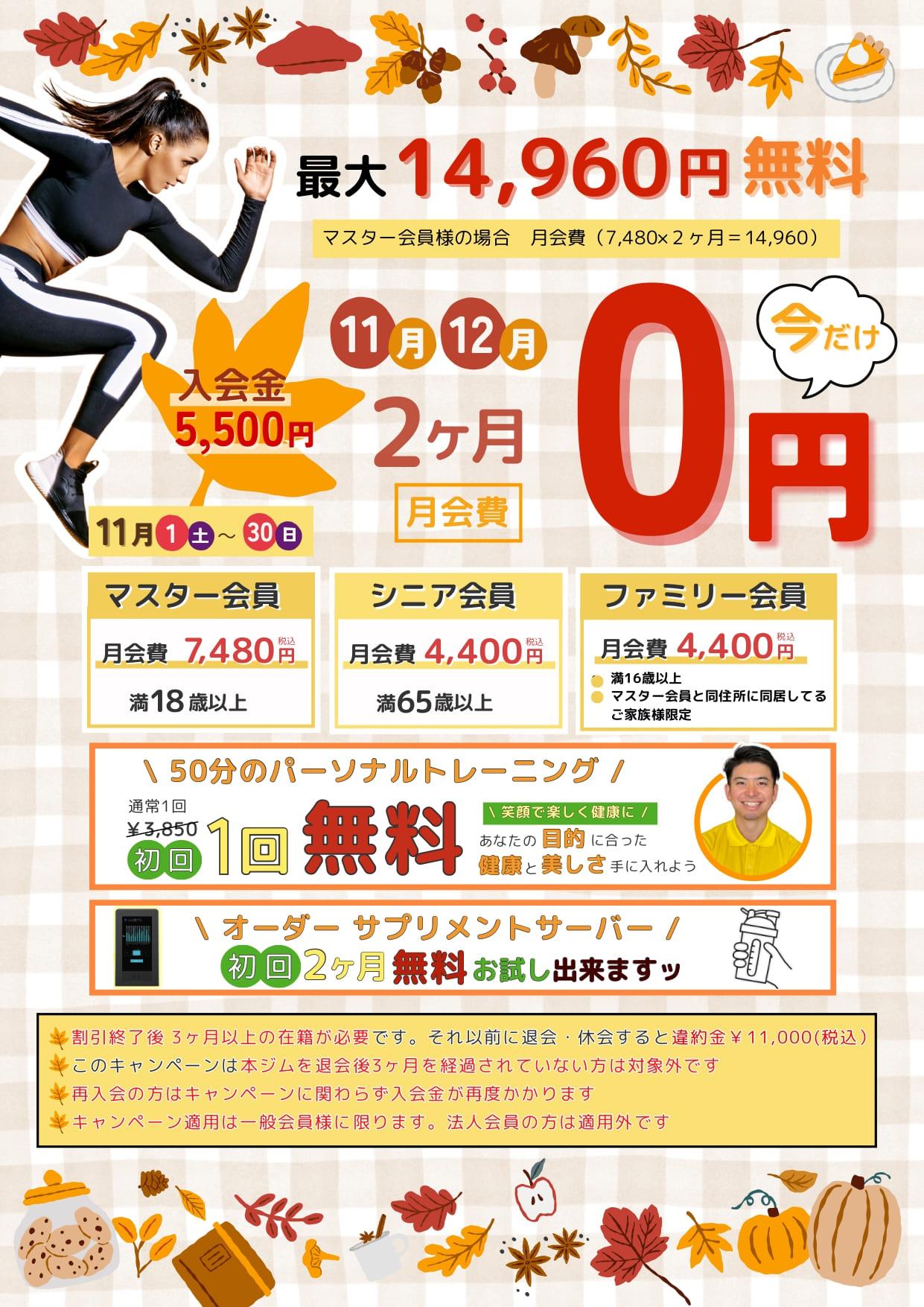 | 備考 | 50分間、専属のパーソナルトレーナーがマンツーマンでサポートします。 ※事前にWEBでのご予約が必要です。 |